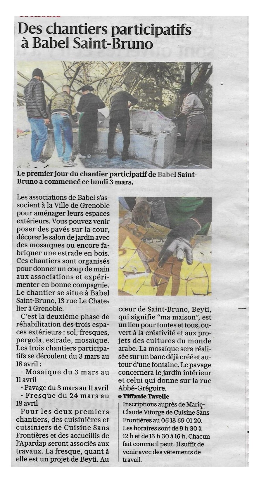 Des chantiers participatifs à Babel Saint Bruno par mcvitorge@gmail.com | Mar 5, 2025 | Actualités Des chantiers participatifs à Babel Saint Bruno Article publié dans le Dauphiné Libéré en date du 5 mars 2025